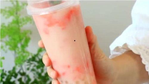 5. 将草莓奶昔倒入容器中,加入冰块,搅拌均匀。